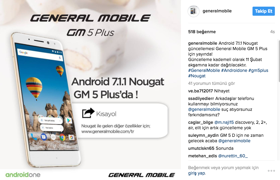 general mobile gm 6 da nougat ve oreo