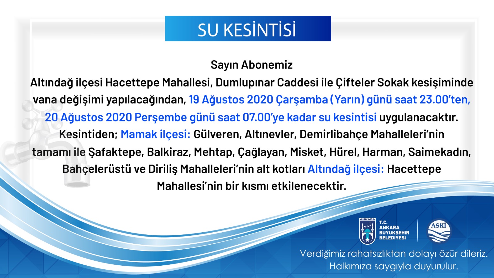 ankara su kesintisi listesi aski