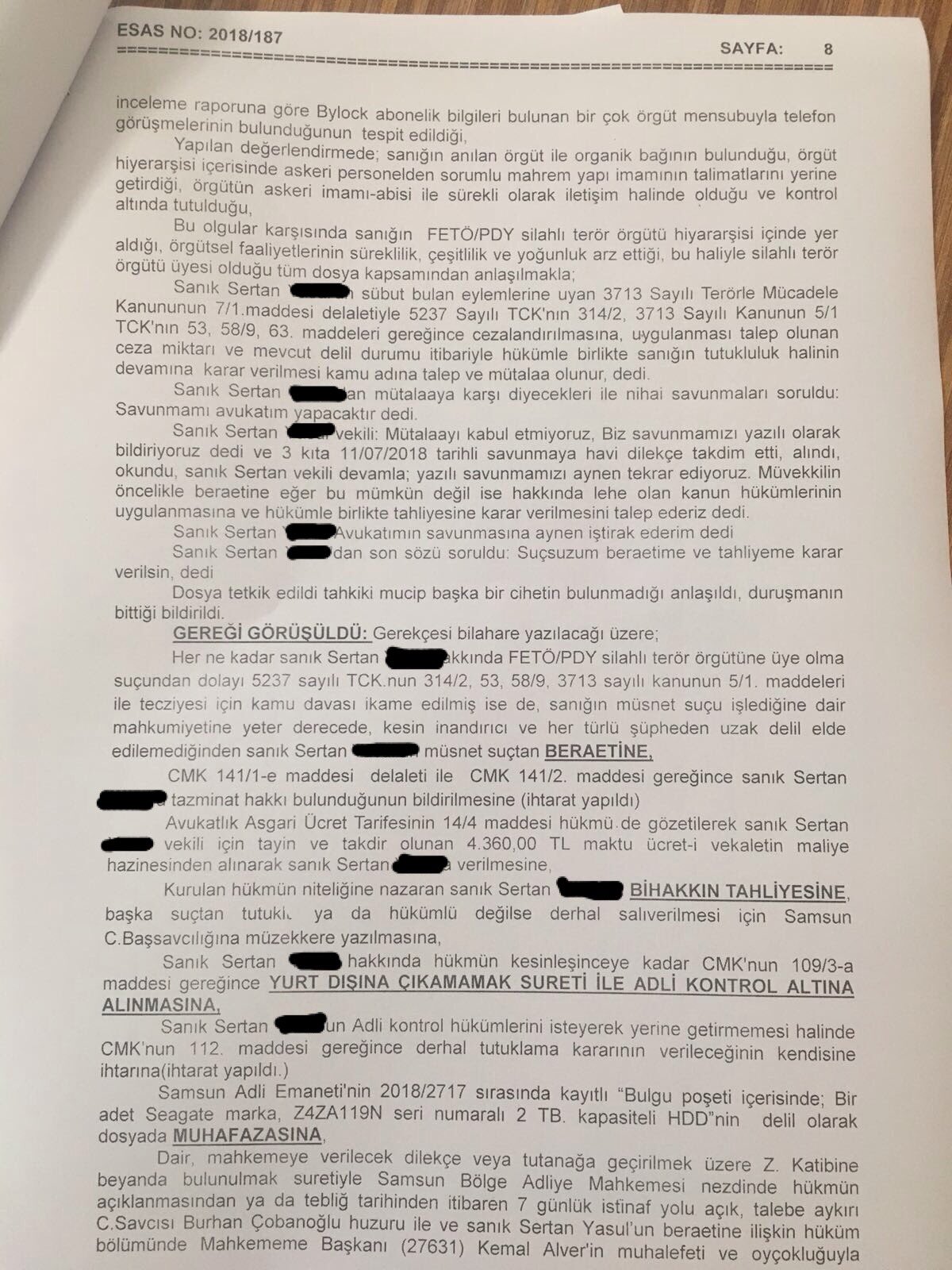telefon gerekceleriyle beraat