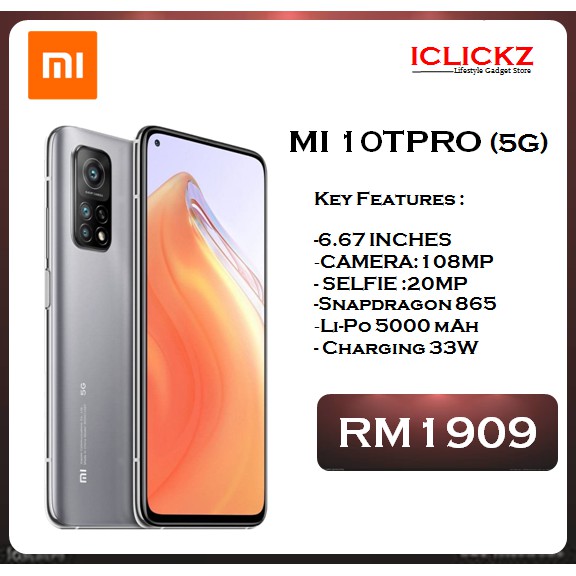 xiaomi mi 10t pro 5g 8gb ram 256gb rom original malaysia set